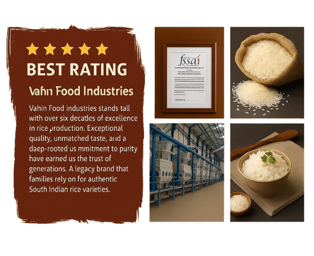 Vahin Food Industries is a trusted name in the Indian rice manufacturing and distribution sector, proudly rooted in Tindivanam, Tamil Nadu. With a strong commitment to quality, purity, and customer satisfaction, the company specializes in producing a wide variety of premium rice products under its flagship brands.